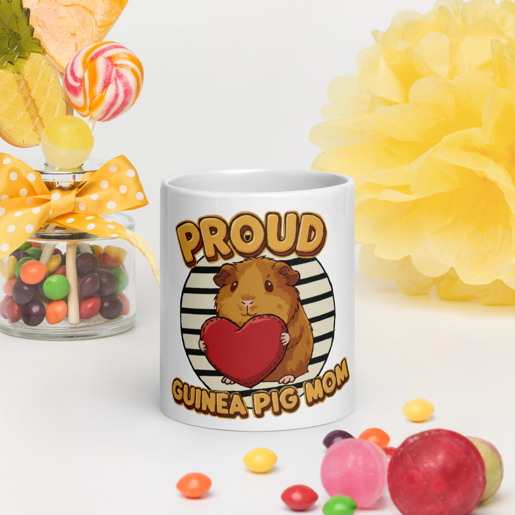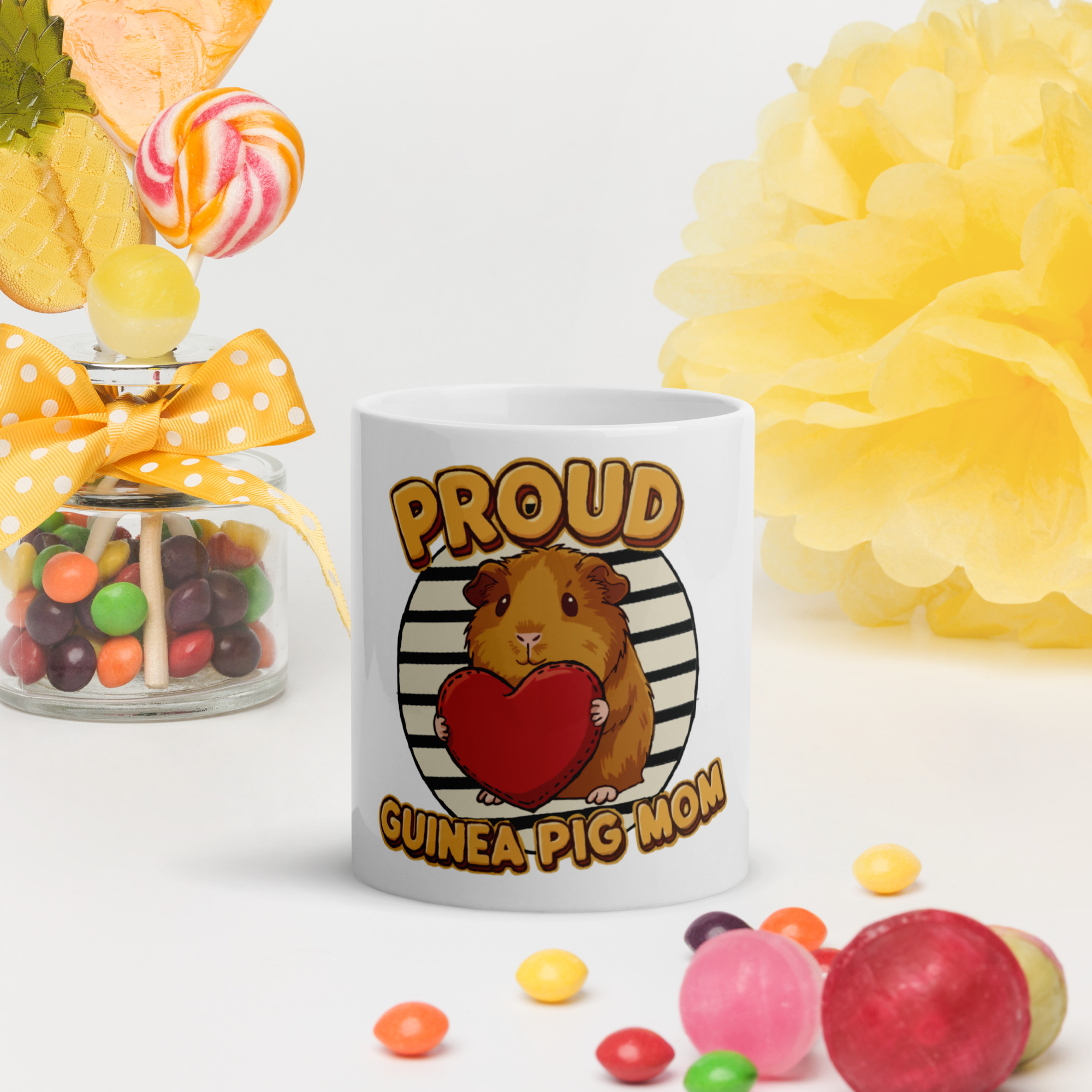 Witte glanzende mok Proud Guinea Pig Mom (Brown)